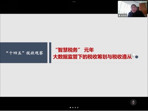 师生做了题为《“十四五”税收观察——“智慧税务”元年 大数据监管下的税收筹划与税收遵从》的线上学术讲座。