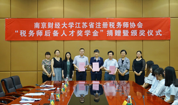 捐赠仪式上,院长李林木教授致欢迎辞。他对江苏省注册税务师协会的捐赠表示感谢,同时对获得此次奖学金的同学给予了肯定。对外联络处处长陆明峰认为,设立“税务师后备人才奖学金”对学生学习引领的意义非常深远,在学业和职业中间架设了有效的沟通桥梁,提供了极大的帮助。