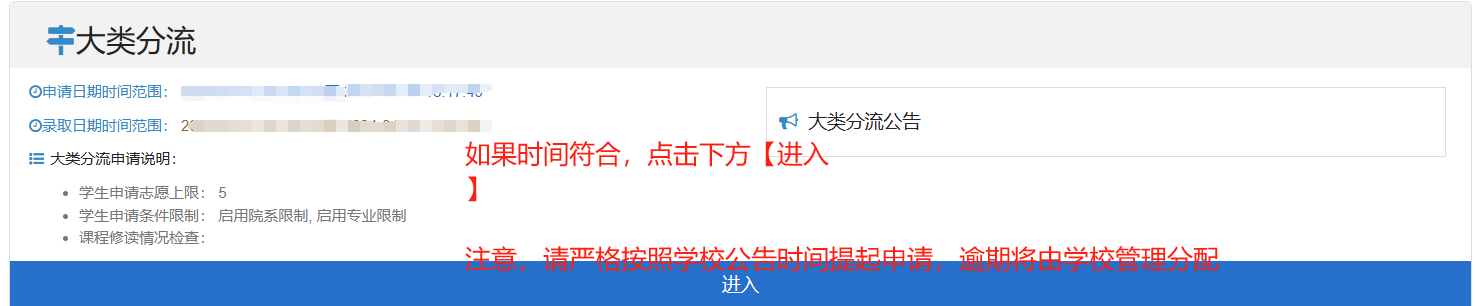 选择左上角【菜单】中的【学生全部服务】,点击【大类分流申请】进入报名页面